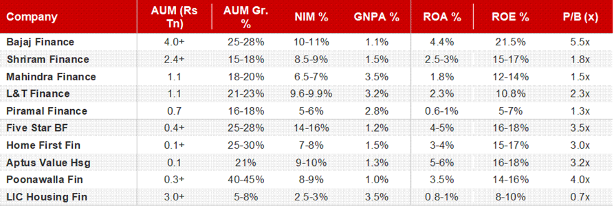 Key NBFC Metrics Snapshot: Select Listed Players (FY25/Latest)