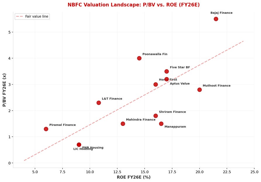 NBFC Valuation Landscape: P/BV vs. ROE (FY26E)
