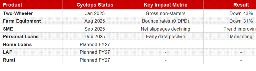 The Cyclops system processes over 100,000 data variables per application for two-wheeler loans. The result is impressive! LTF’s approval rate improved by 15%+ while simultaneously reducing credit costs.