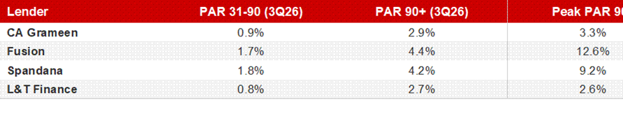 MFI Performance During the 2024-25 Crisis: PAR Comparison (3QFY26)