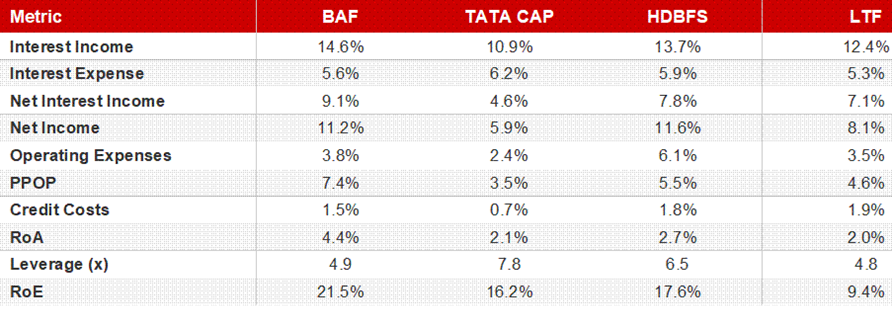 NIMs, and hence ROAs, vary significantly across the NBFC landscape. The following comparisons are instructive for anyone trying to understand which business models generate the most value per unit of risk taken.